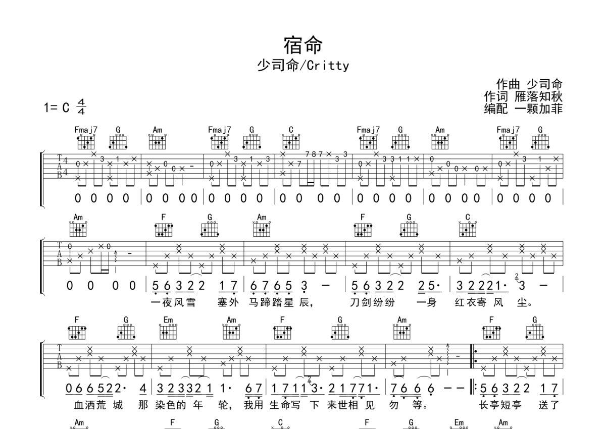 • 宿命吉他谱 - 少司命 - C调吉他弹唱谱第1张