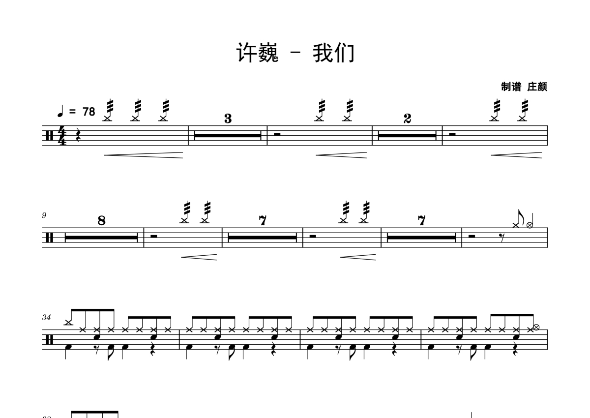 曲谱介绍: 许巍《我们》架子鼓谱,庄颜编配出品,共有2张高清图谱,免翻页排版设计。