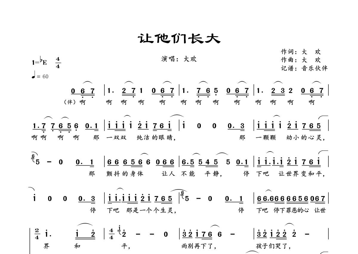• 让他们长大简谱 - 大欢第1张