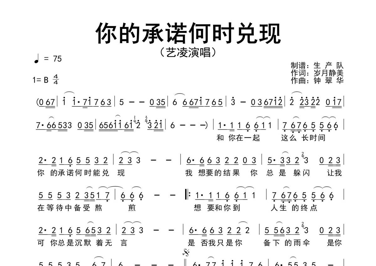 • 你的承诺何时兑现简谱 - 艺凌 - 原版简谱第1张