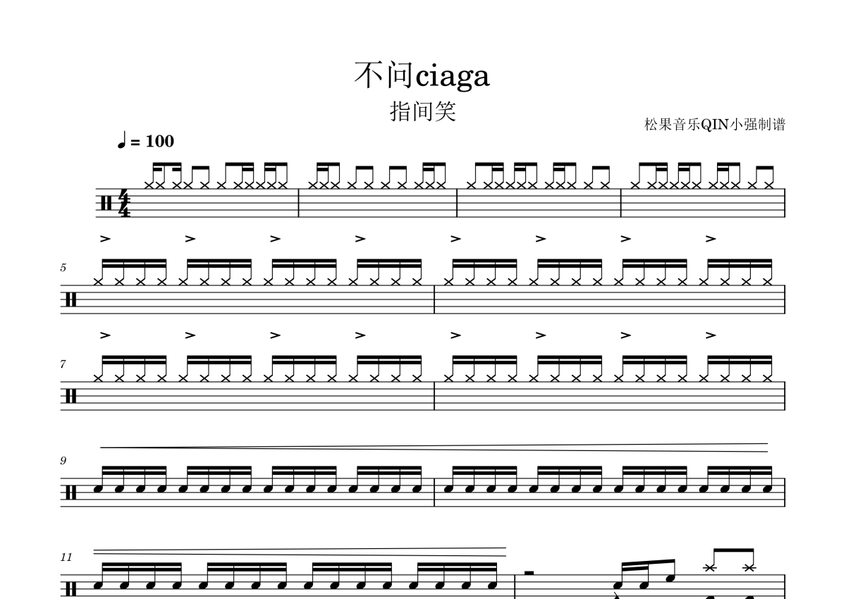 • 不问别离鼓谱 - 指尖笑 - 架子鼓谱第1张