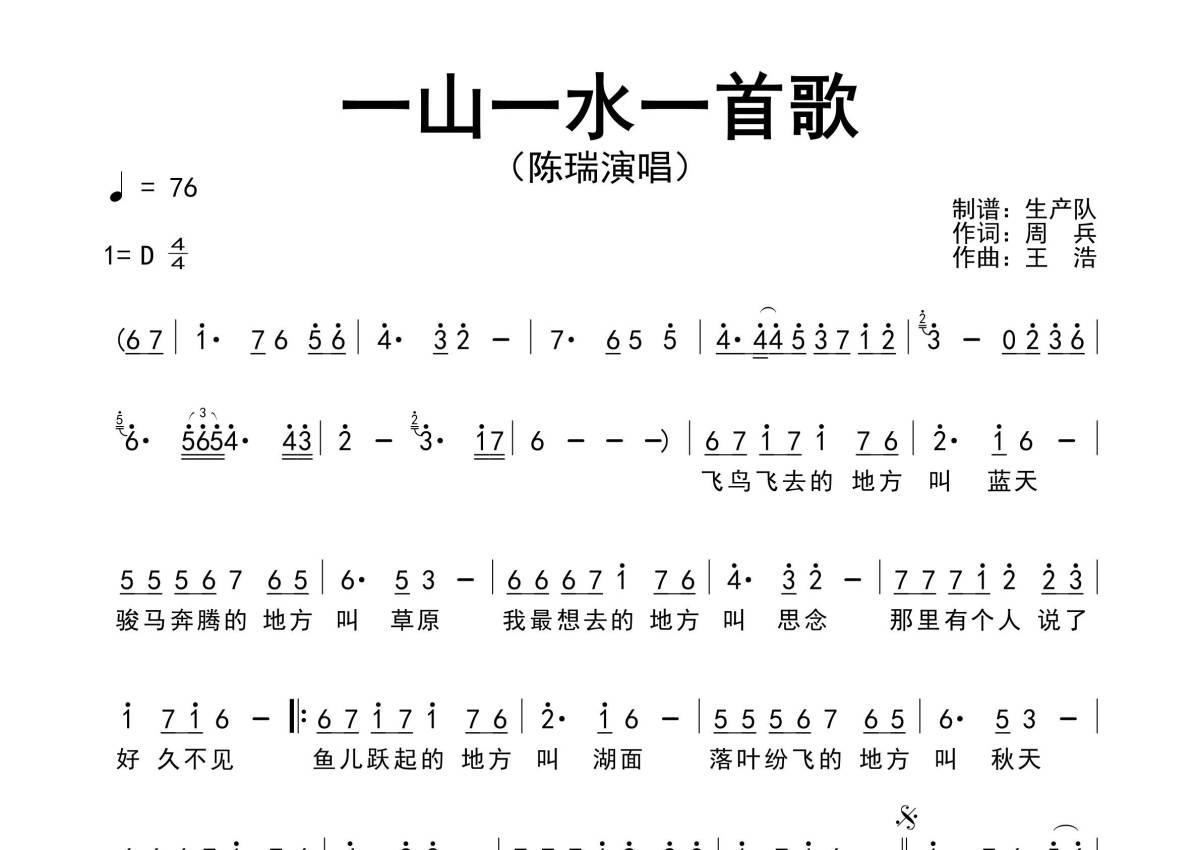 • 一山一水一首歌简谱 - 陈瑞 - 原版简谱第1张