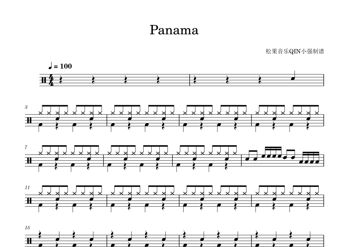 曲谱介绍: Matteo《Panama》架子鼓谱,松果音乐QIN小强编配出品,共有2张高清图谱,免翻页排版设计。