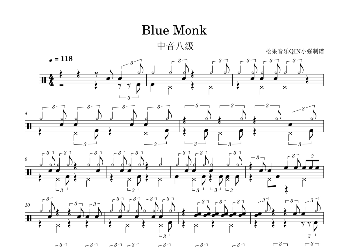 • Blue Monk鼓谱 - 中音考级八级 - 架子鼓谱第1张