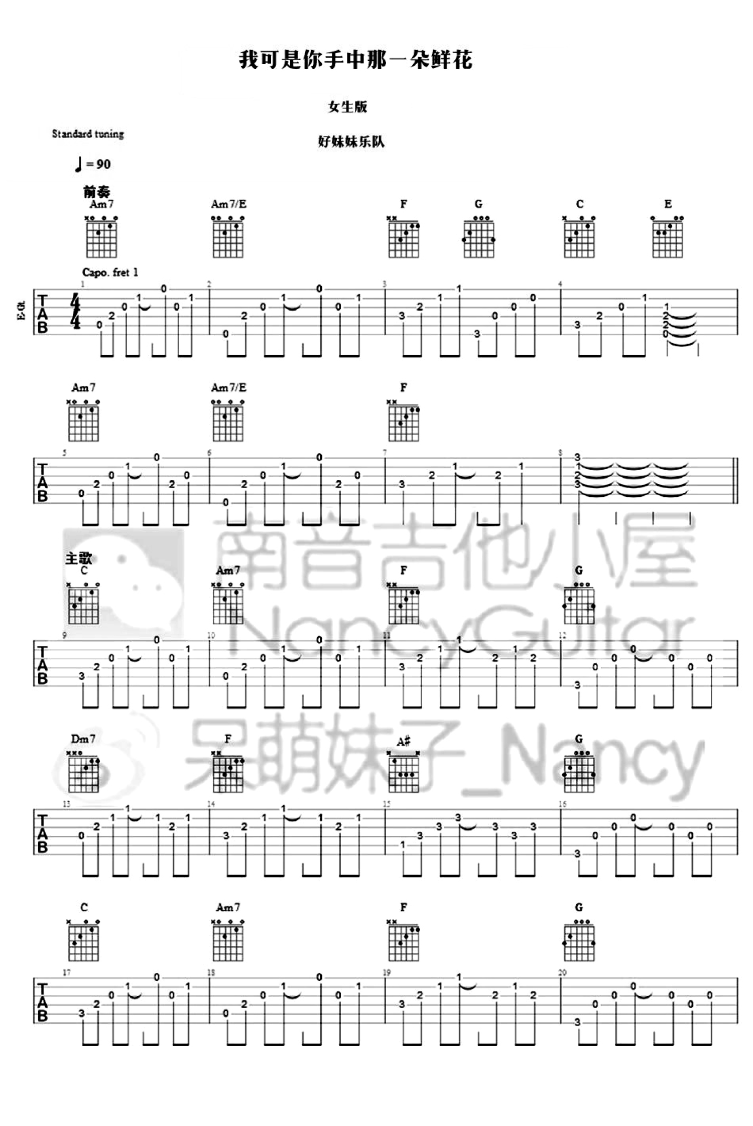 我可是你手中那一朵鲜花吉他谱 - 好妹妹乐队 - 吉他弹唱谱 - 女生版ancy