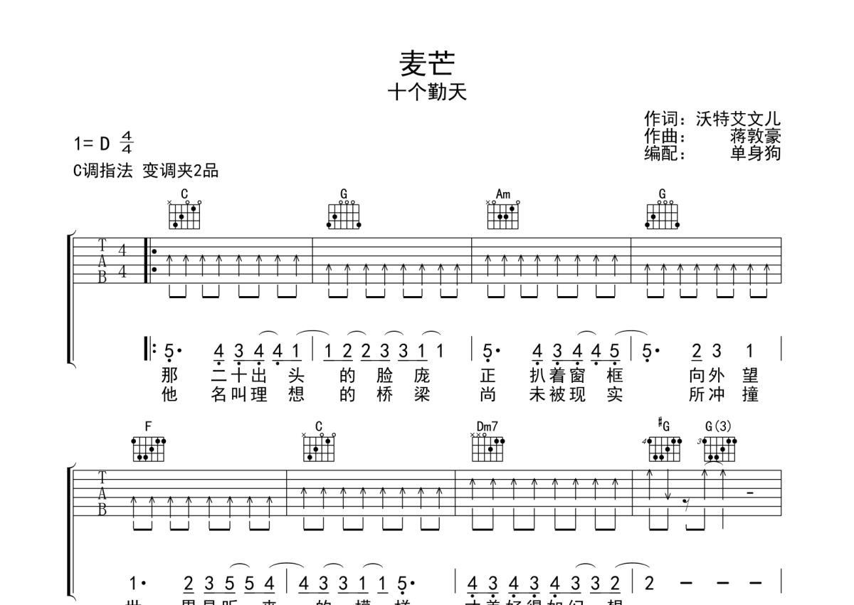 • 麦芒吉他谱 - 十个勤天 - C调吉他弹唱谱第1张