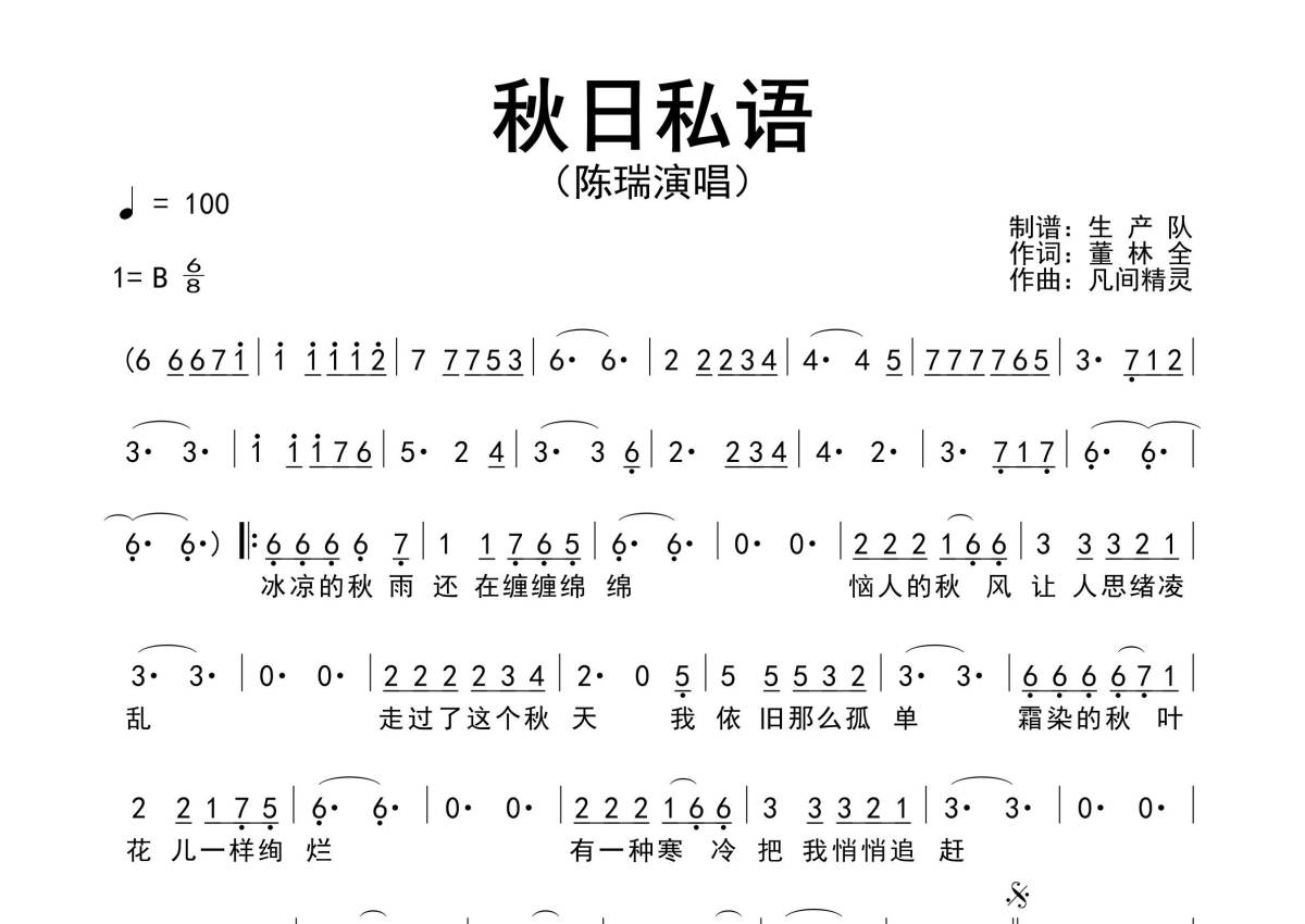 • 秋日私语简谱 - 陈瑞 - 原版简谱第1张