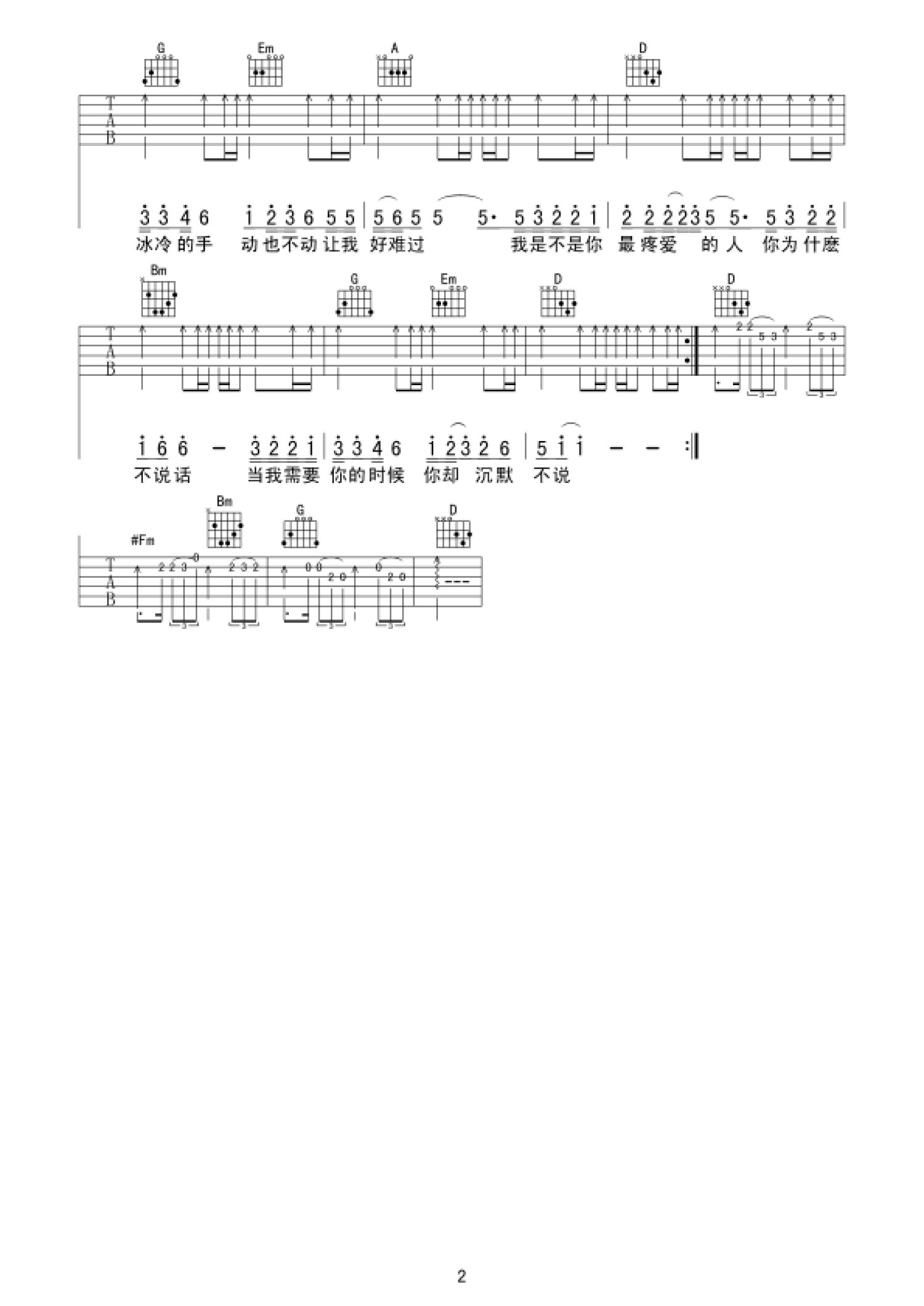 曲谱介绍: 我是不是你最疼爱的人吉他六线谱这首台湾音乐人小虫为潘越云专辑写的歌曲《我是不是你最疼爱的人》,旋律哀婉动听,闻者流泪感动。中国好声音的李代沫推出的专辑也特意选择了这首歌。吉他谱六线编配D调和弦指法。