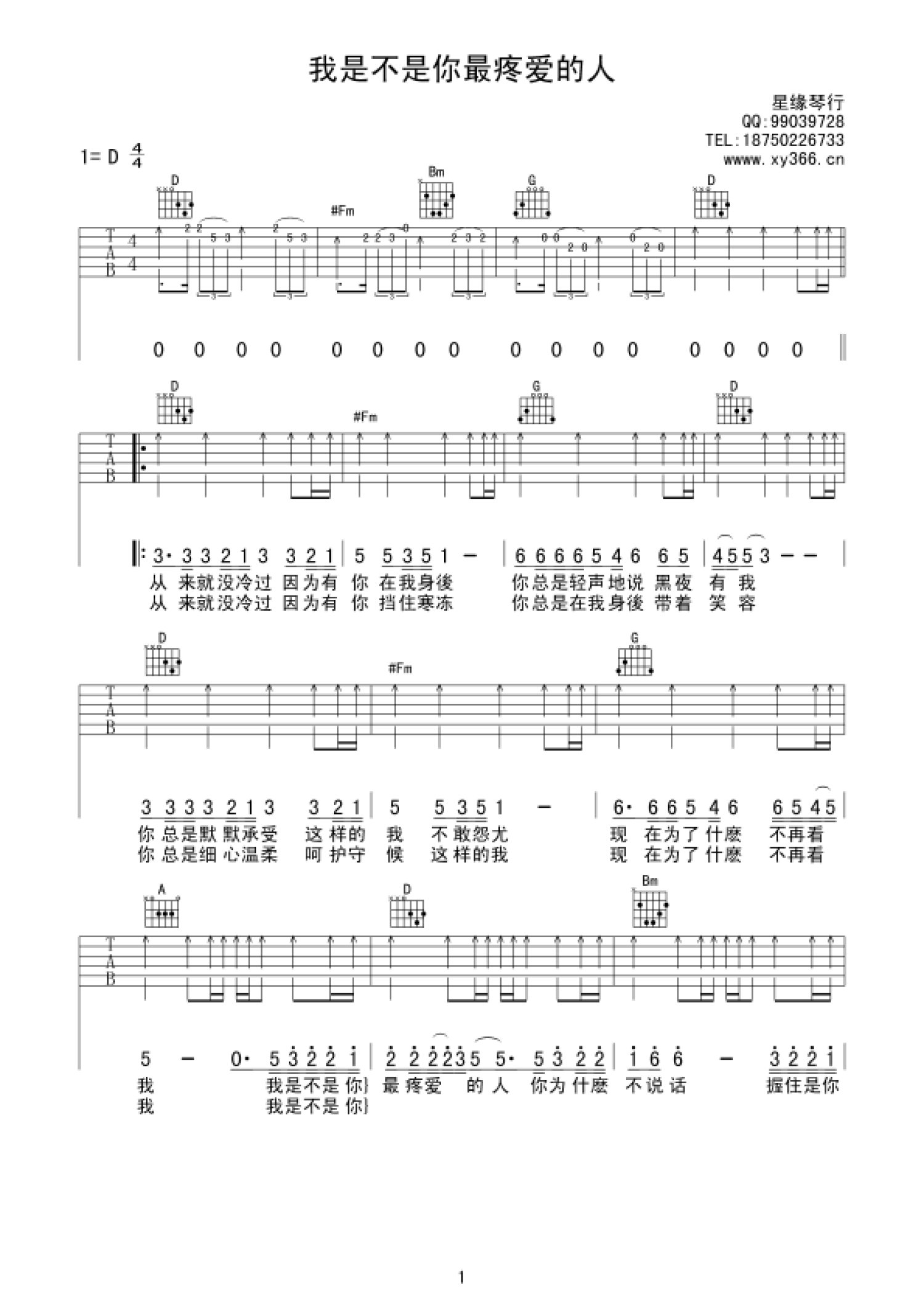 当前位置:琴谱网>吉他弹唱>我是不是你最疼爱的人