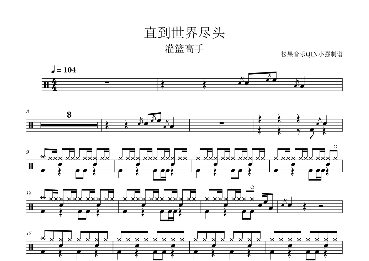 曲谱介绍: WANDS《直到世界尽头》架子鼓谱,松果音乐QIN小强编配出品,共有3张高清图谱。