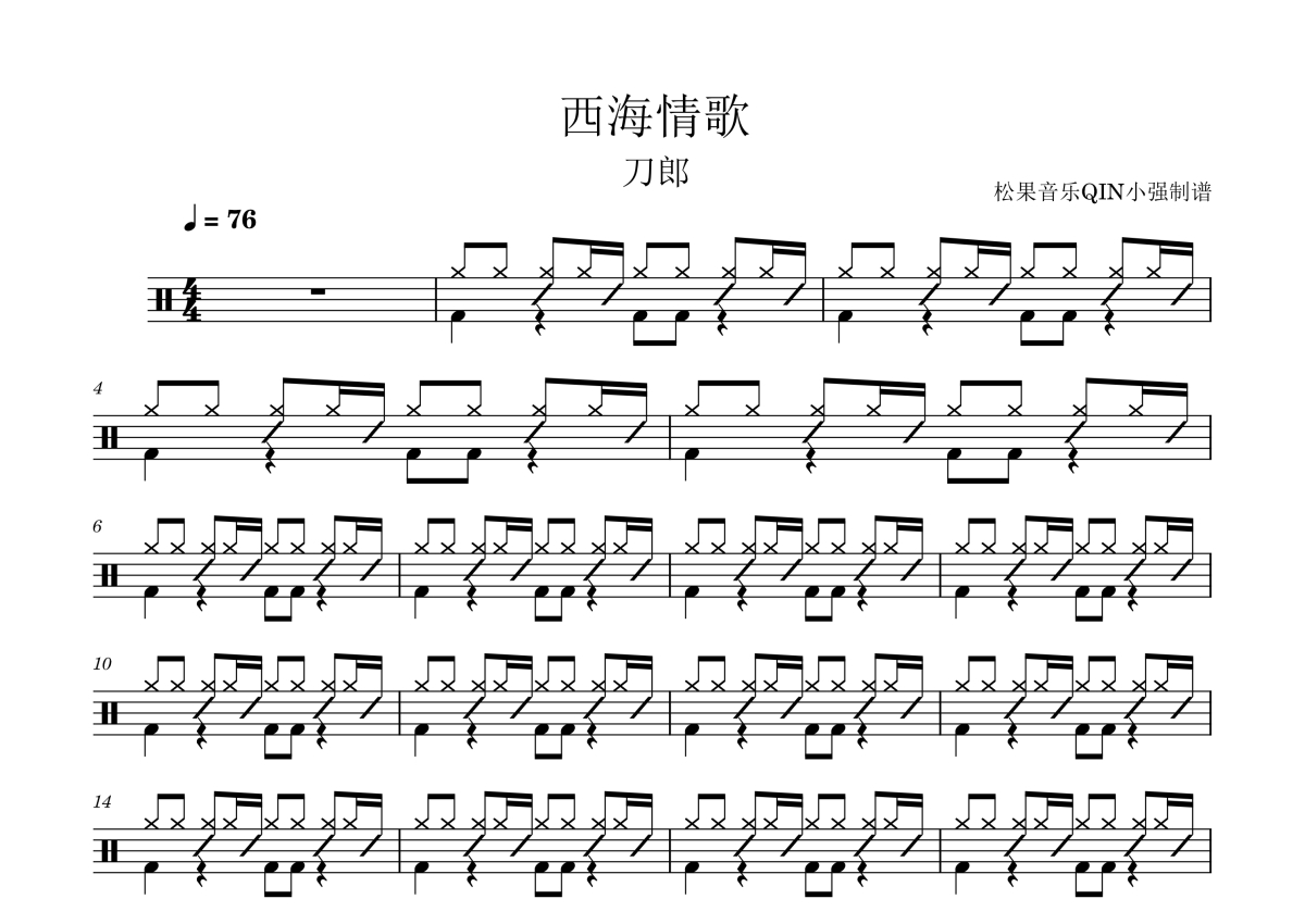 • 西海情歌鼓谱 - 刀郎 - 架子鼓谱第1张