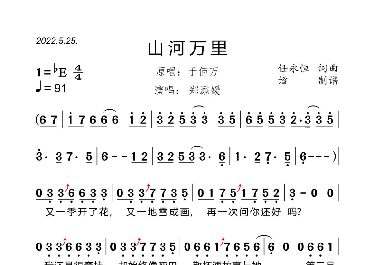 • 山河万里简谱 - 郑添媛第1张