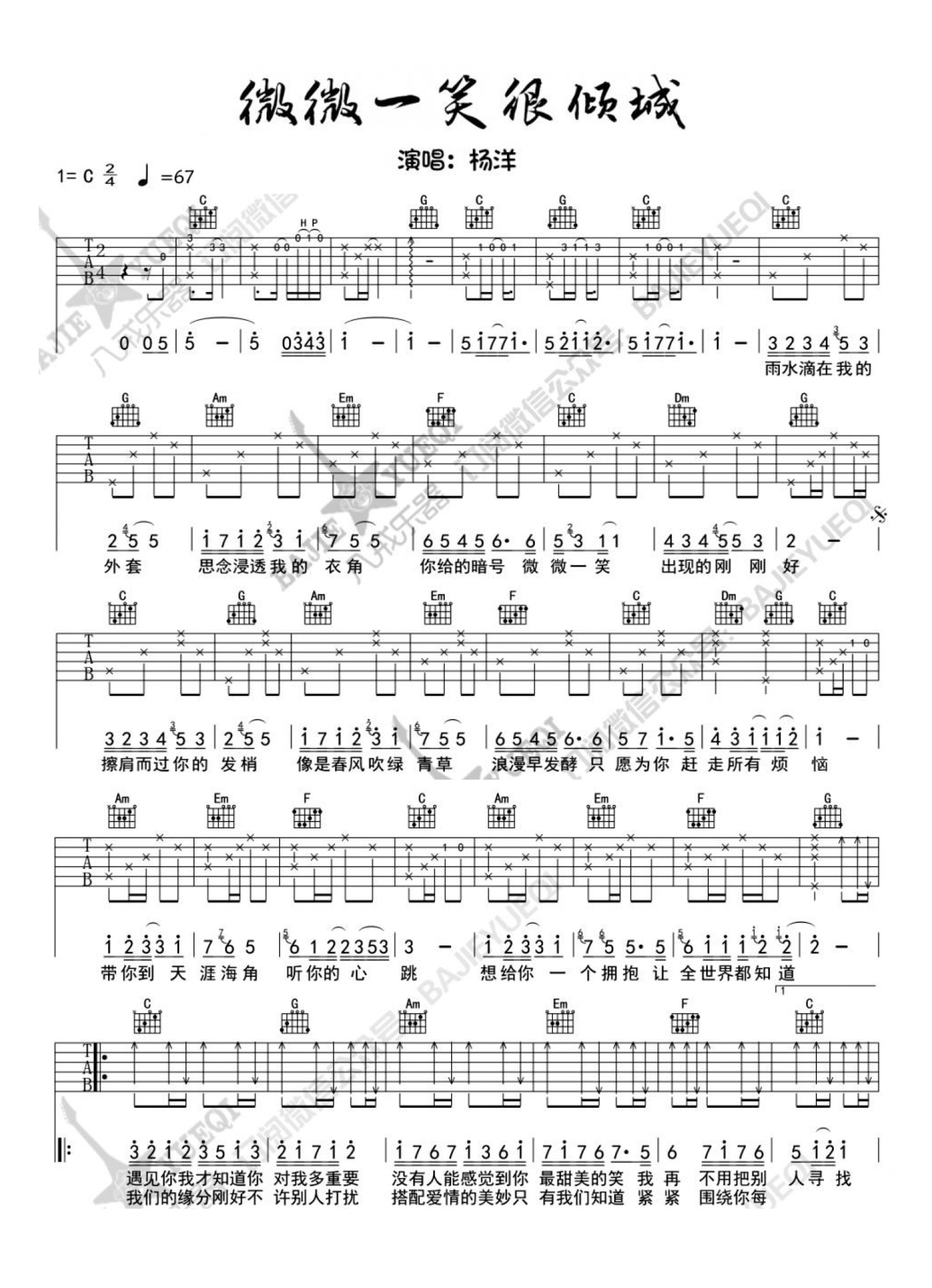 微微一笑很倾城吉他谱 - 杨洋 - C调吉他弹唱谱