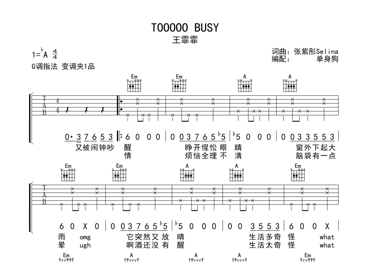 • TOOOOO BUSY吉他谱 - 王霏霏 - G调吉他弹唱谱第1张
