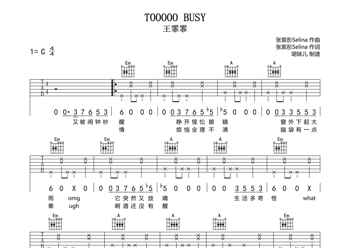 • TOOOOO BUSY吉他谱 - 王霏霏 - G调吉他弹唱谱第1张
