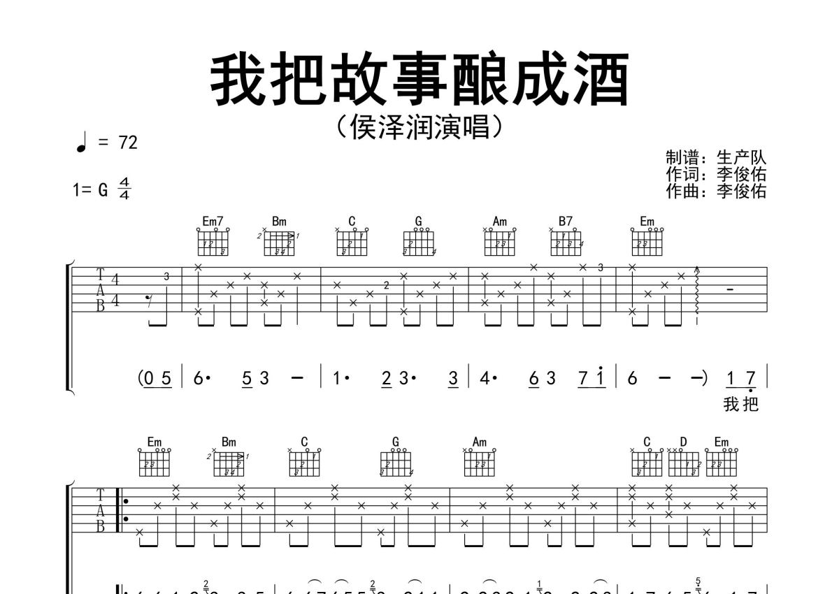 • 我把故事酿成酒吉他谱 - 侯泽润 - G调吉他弹唱谱第1张