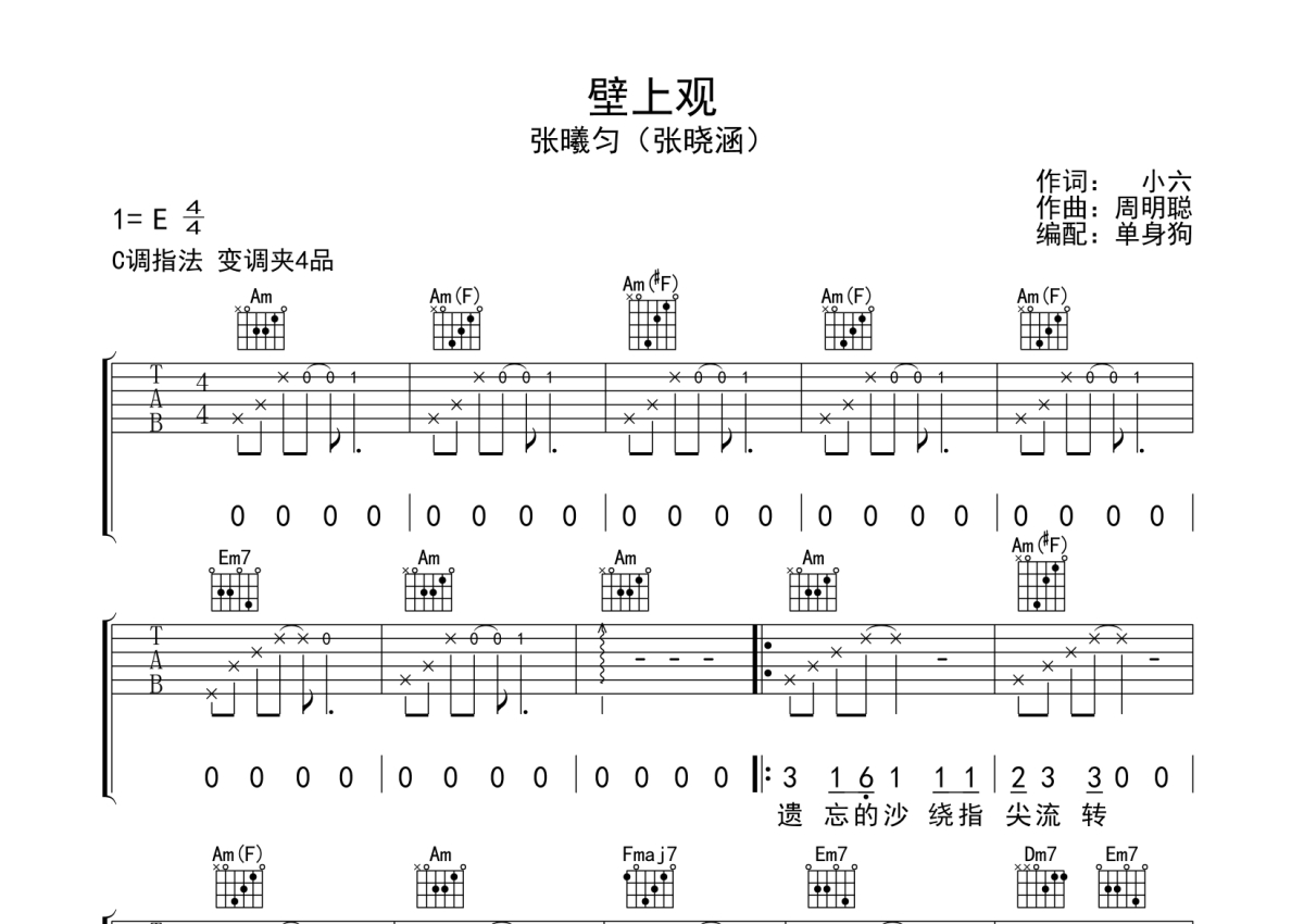 • 壁上观吉他谱 - 张晓涵 - C调吉他弹唱谱第1张