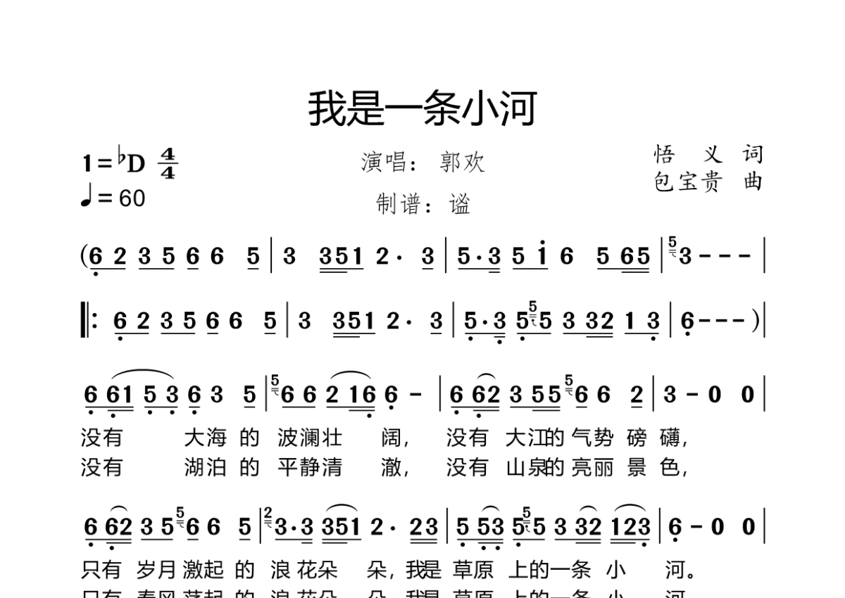 • 我是一条小河简谱 - 郭欢第1张