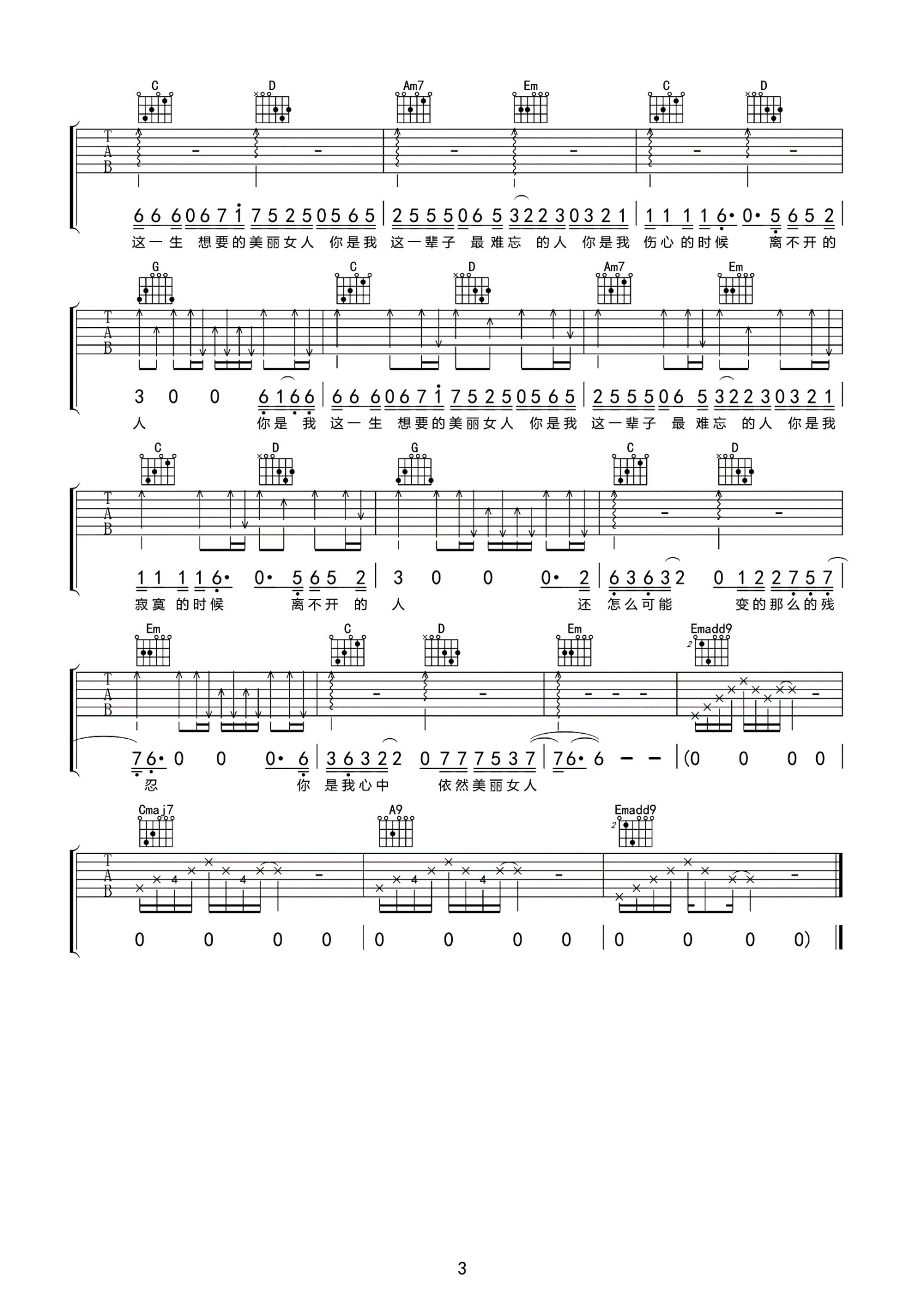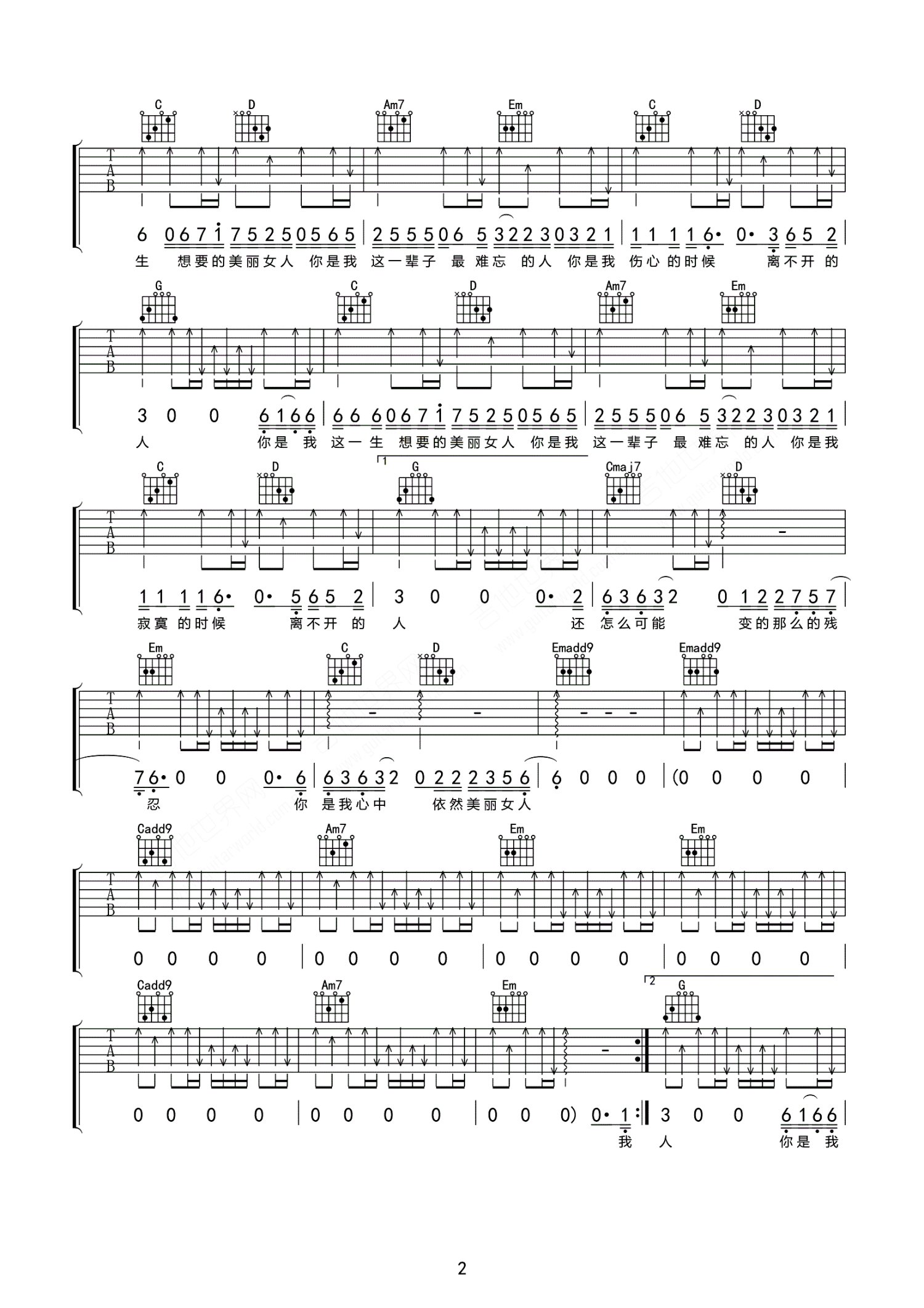 当前位置:琴谱网>吉他弹唱>美丽女人