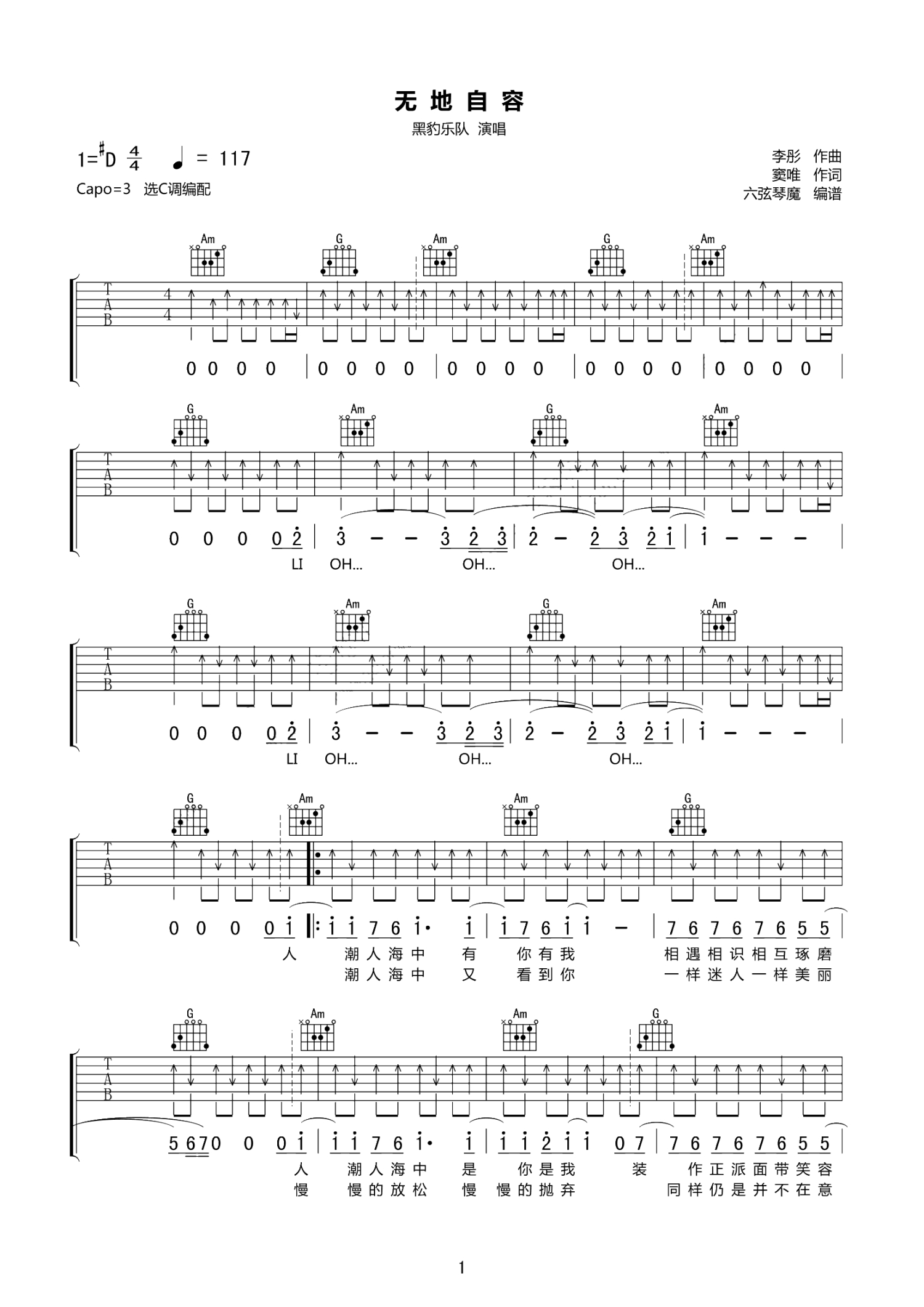 无地自容吉他谱 - 黑豹乐队 - C调吉他弹唱谱
