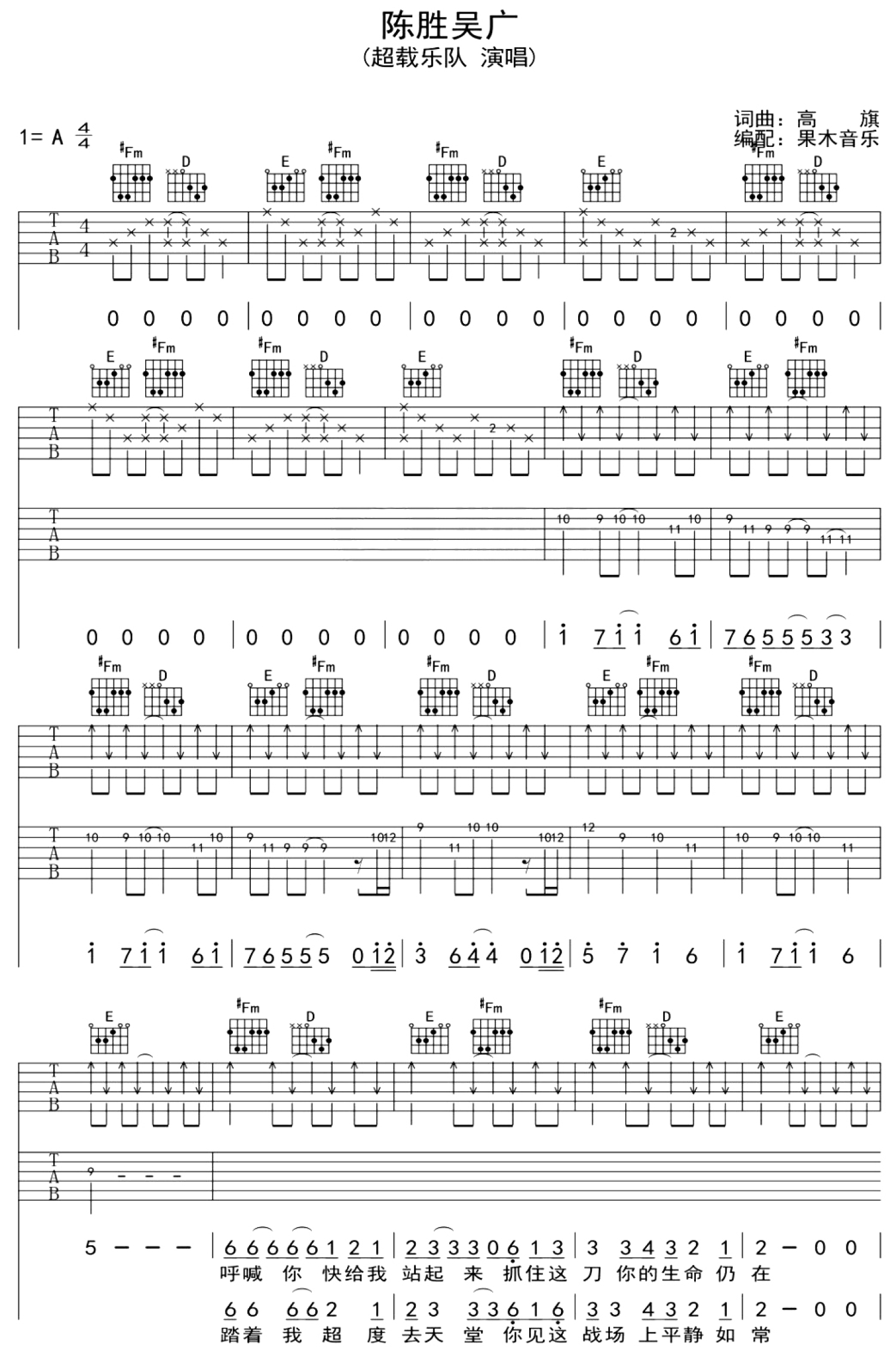 陈胜吴广吉他谱 - 超载乐队 - A调吉他弹唱谱