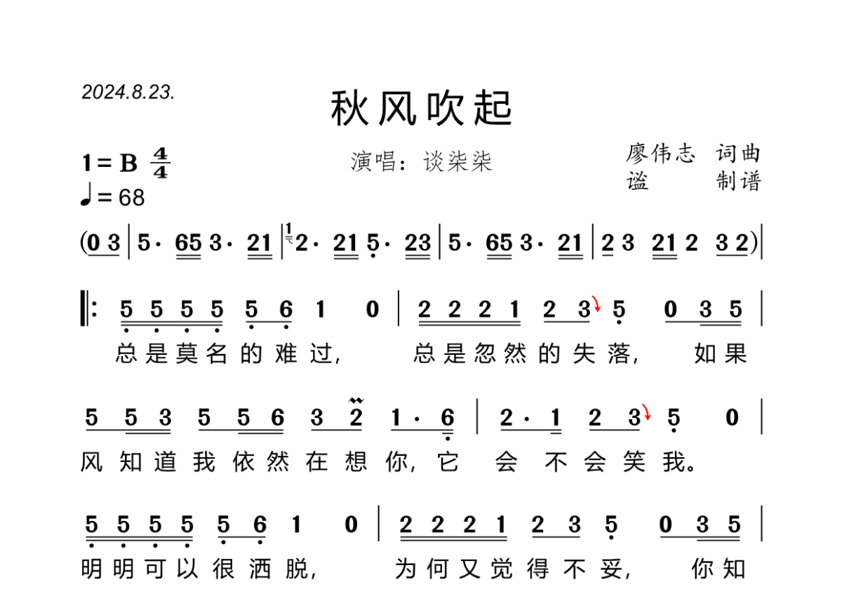 秋风吹起简谱 - 谈柒柒