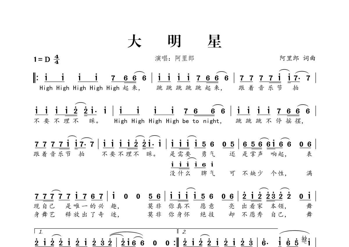 曲谱介绍: 阿里郎《大明星》,桃李醉春风编配出品,共有1张高清图谱,免翻页排版设计。