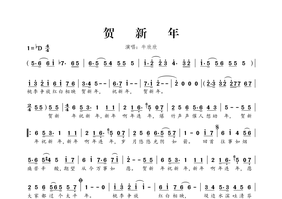 • 贺新年简谱 - 牛欣欣第1张