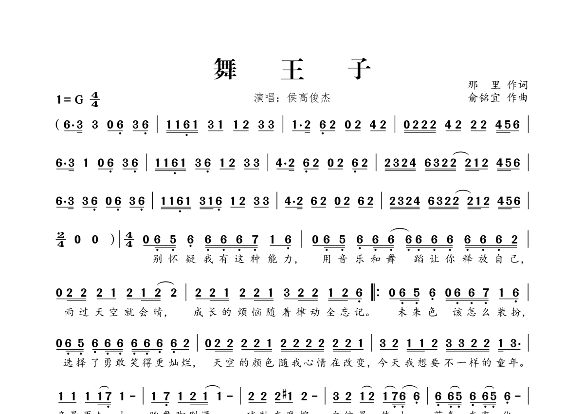 • 舞王子简谱 - 侯高俊杰第1张
