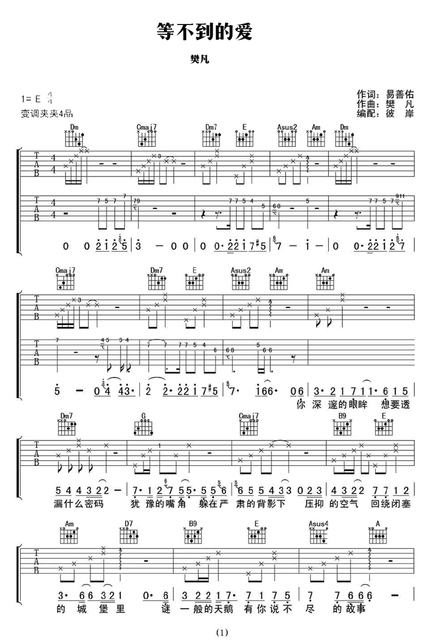 等不到的爱吉他谱 - 樊凡 - 吉他弹唱谱