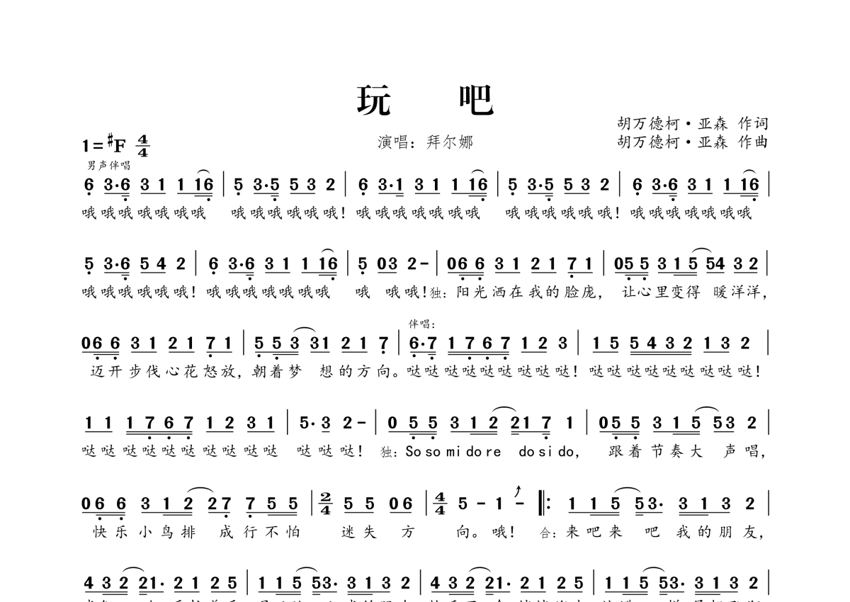 曲谱介绍: 拜尔娜《玩吧》,桃李醉春风编配出品,共有2张高清图谱,免翻页排版设计。