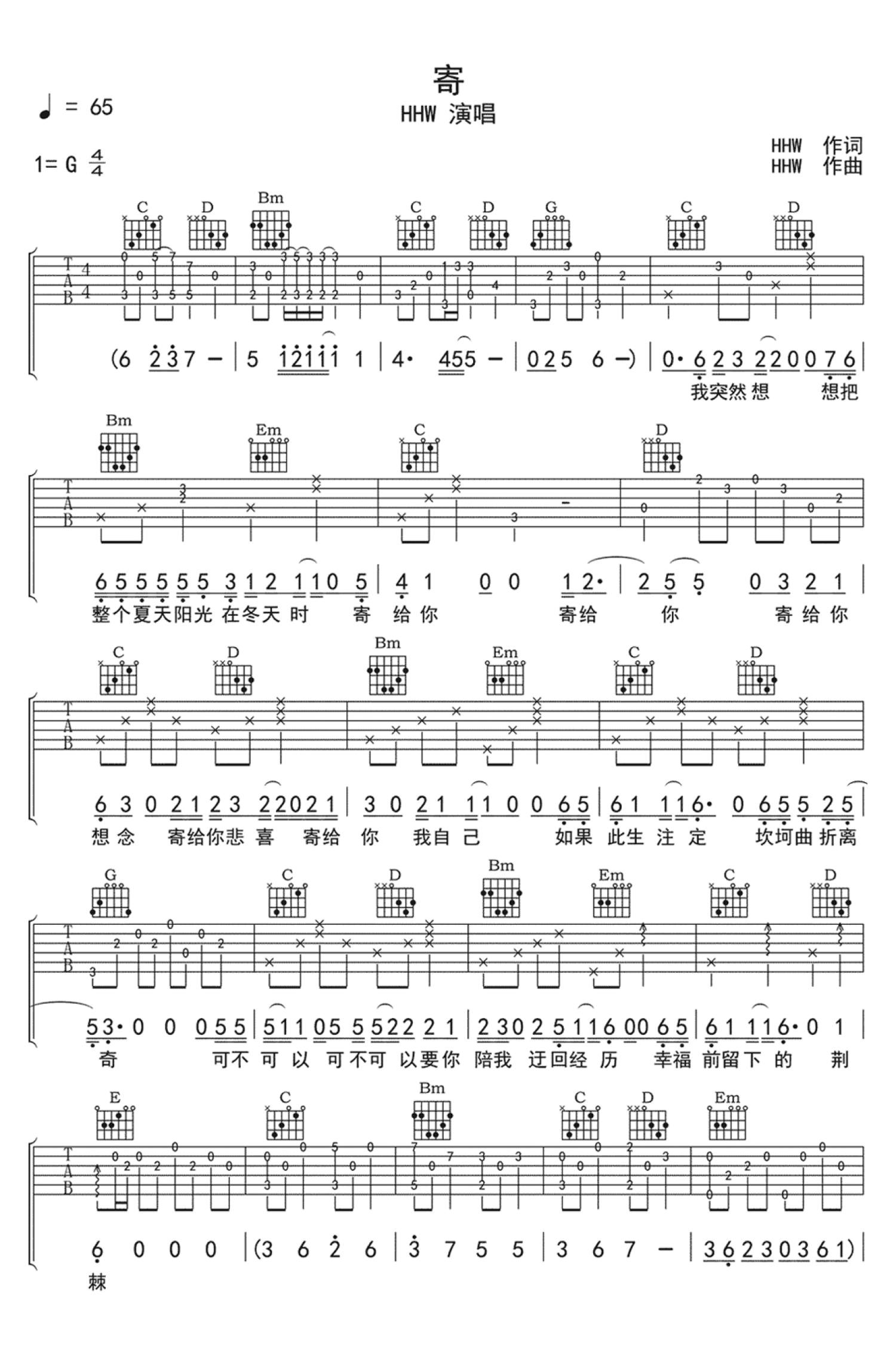 寄吉他谱 - HHW - C调吉他弹唱谱