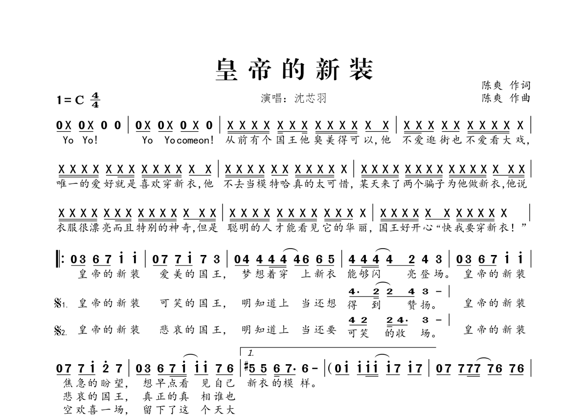 • 皇帝的新装简谱 - 沈辛羽第1张