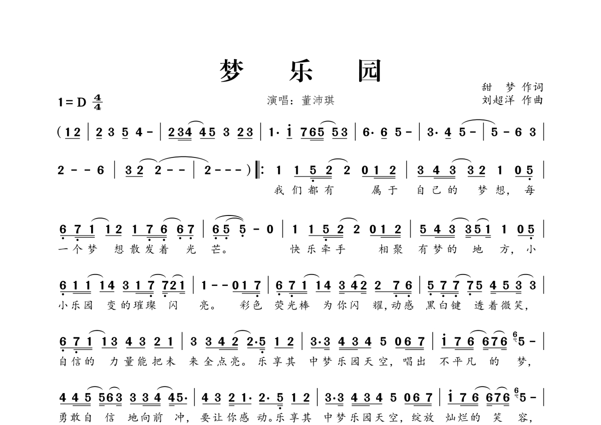 梦乐园简谱 - 董沛琪