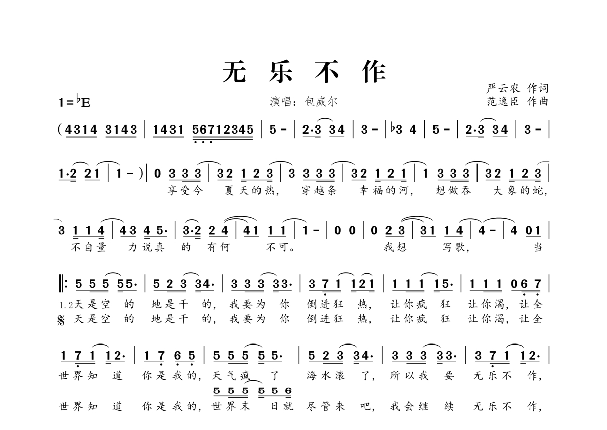 曲谱介绍: 包威尔《无乐不作》,桃李醉春风编配出品,共有1张高清图谱,免翻页排版设计。