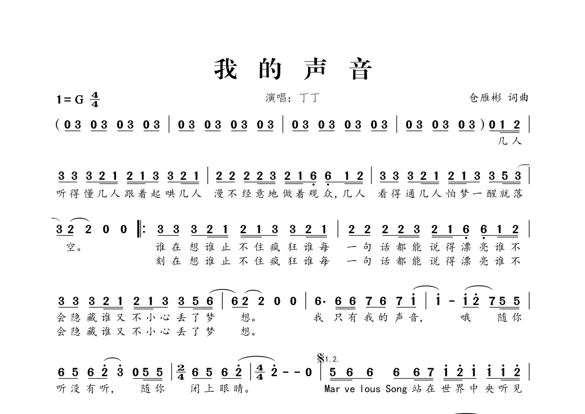• 我的声音简谱 - 丁丁第1张