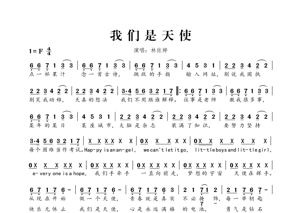 • 我们是天使简谱 - 林依婷第1张