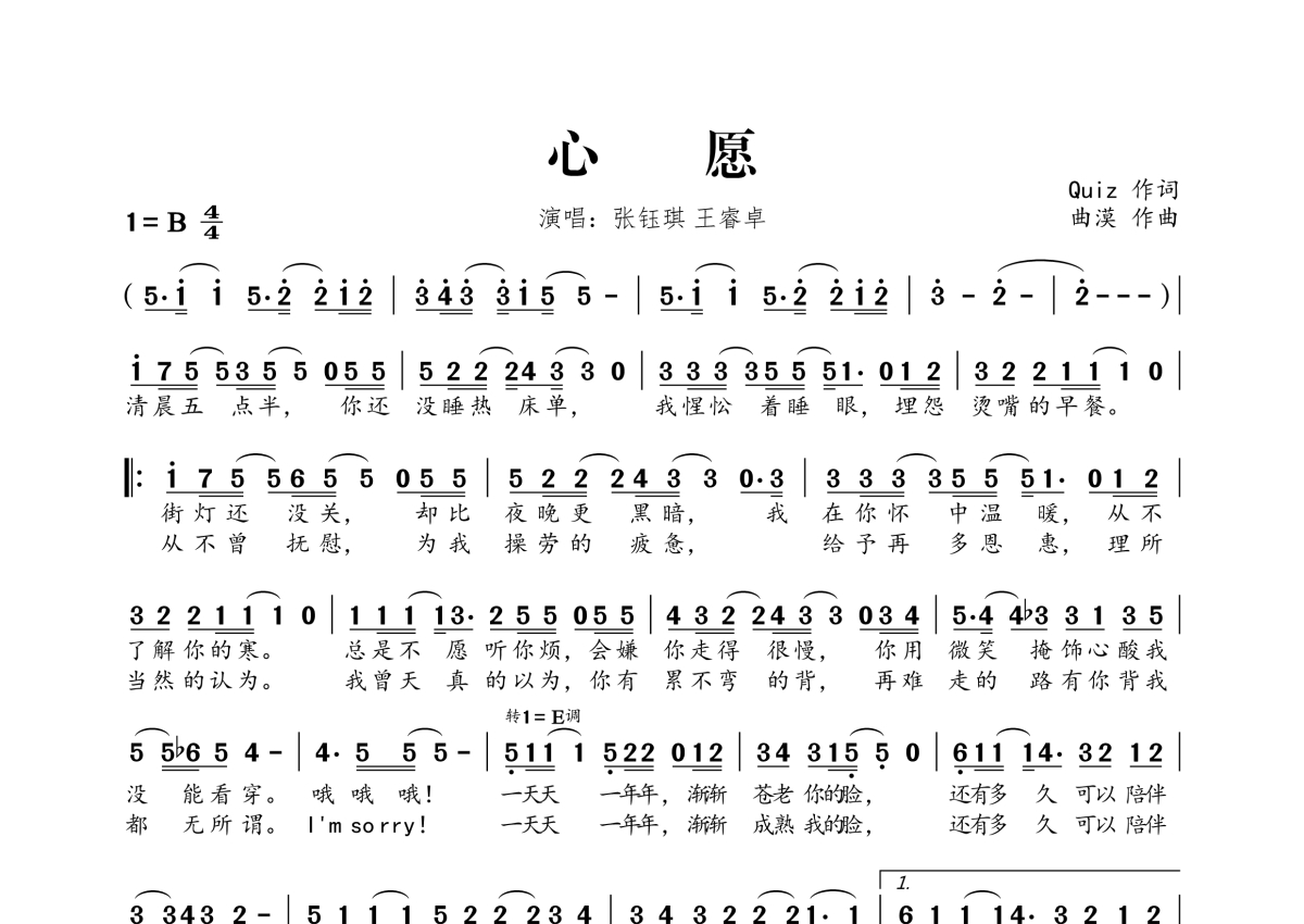 • 心愿简谱 - 张钰琪&王睿卓第1张