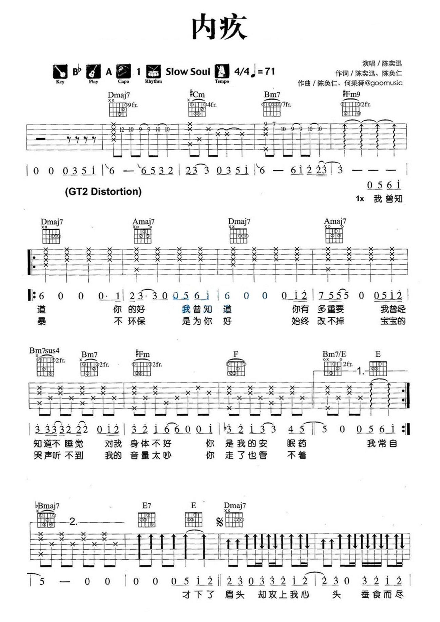 内疚吉他谱 - 陈奕迅 - 吉他弹唱谱