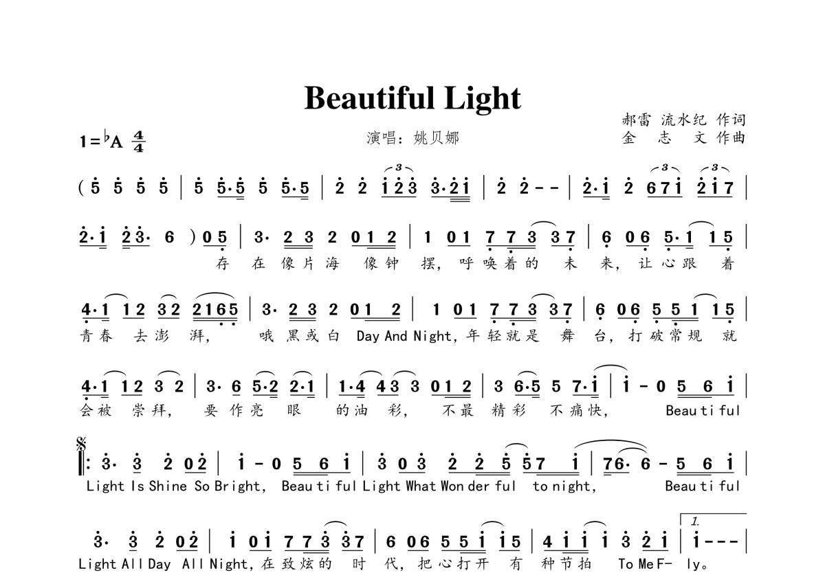 当前位置:琴谱网>简谱>Beautiful Light