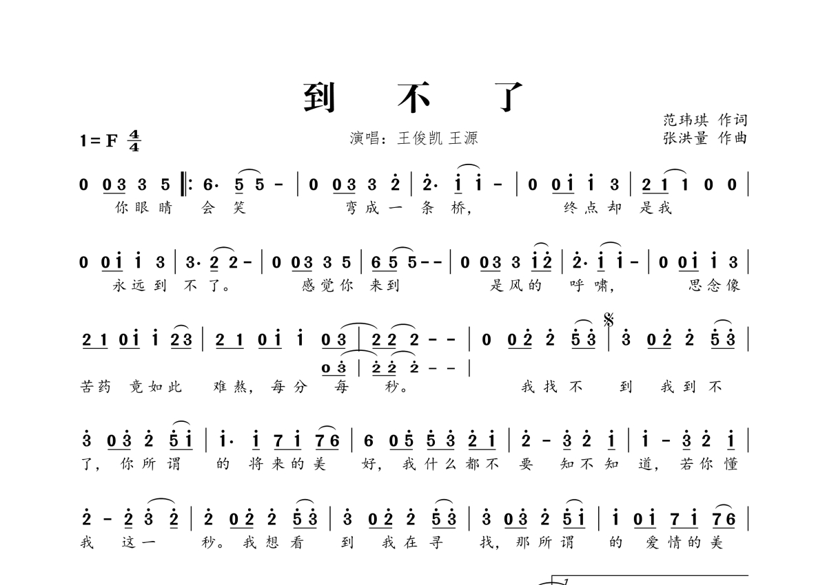 到不了简谱 - 王俊凯&王源