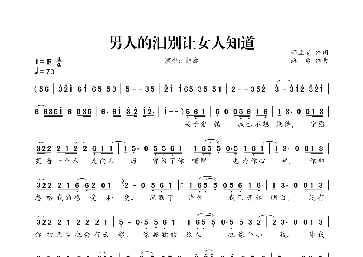 • 男人的泪别让女人知道简谱 - 赵鑫第1张