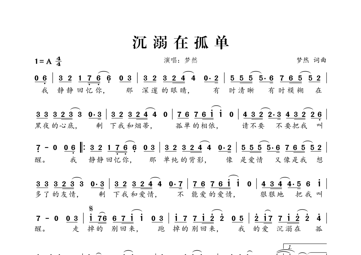 沉溺在孤单简谱 - 梦然