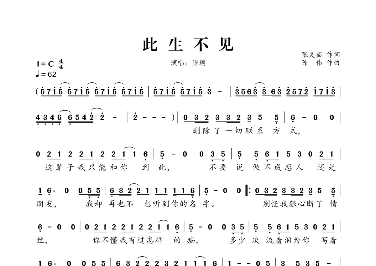 此生不见简谱 - 陈瑞