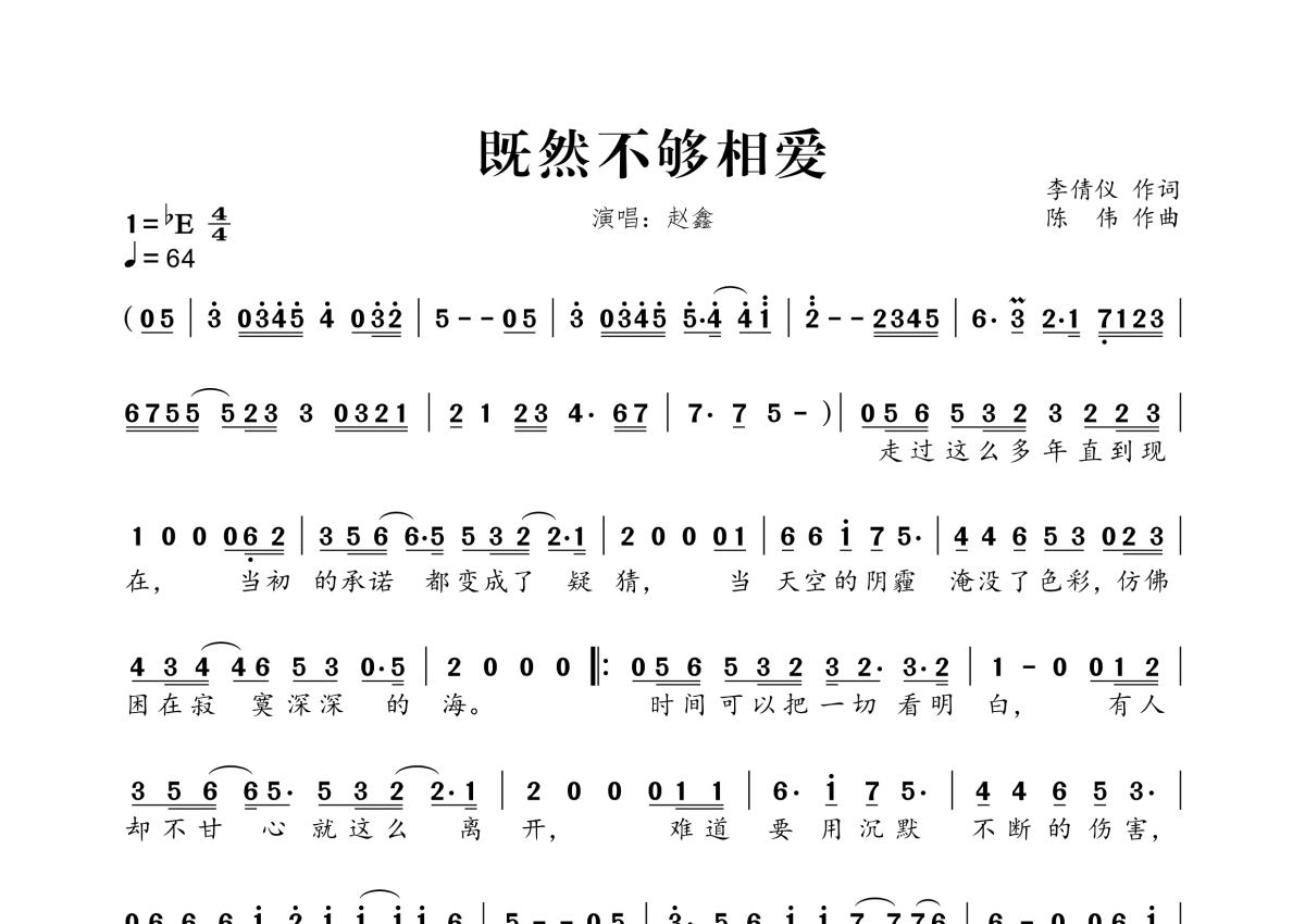 • 既然不够相爱简谱 - 赵鑫第1张