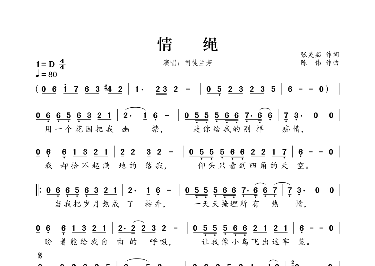 情绳简谱 - 司徒兰芳