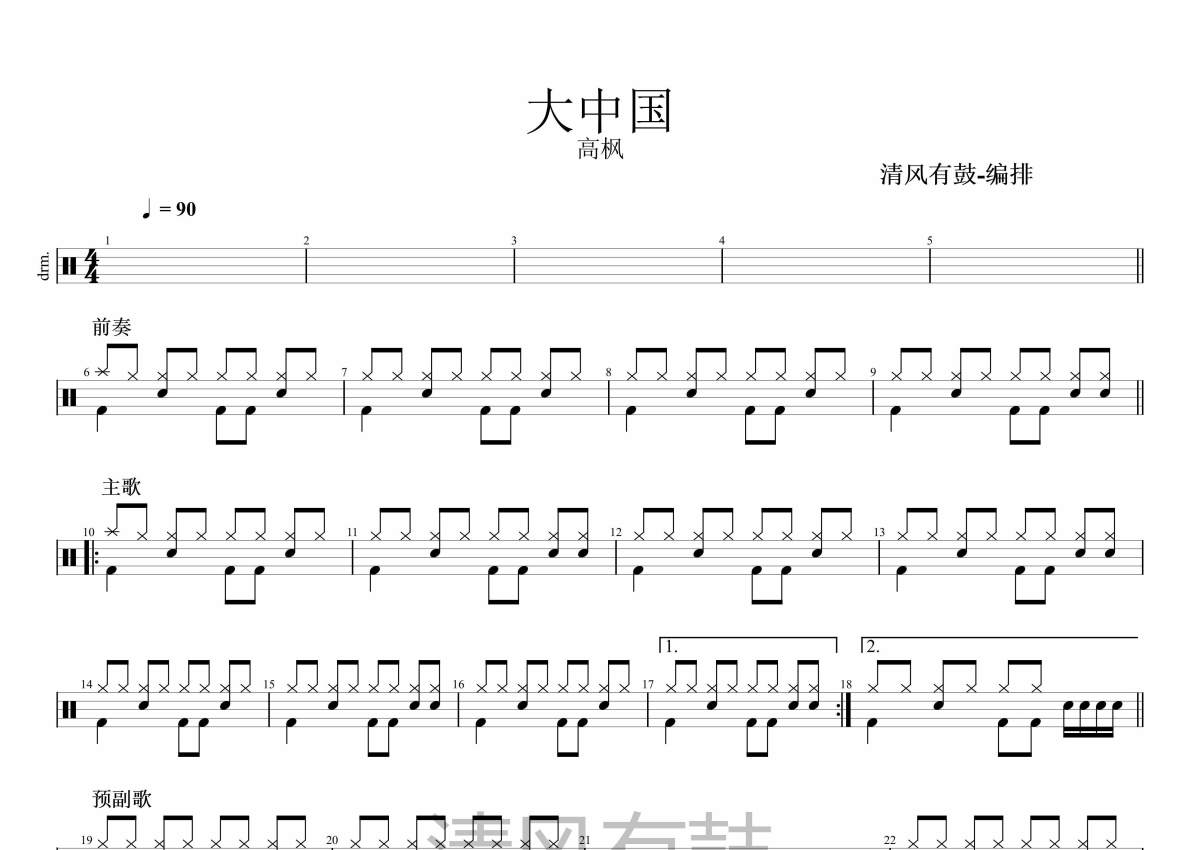 • 大中国 偏简单鼓谱 - 高枫 - 架子鼓谱第1张
