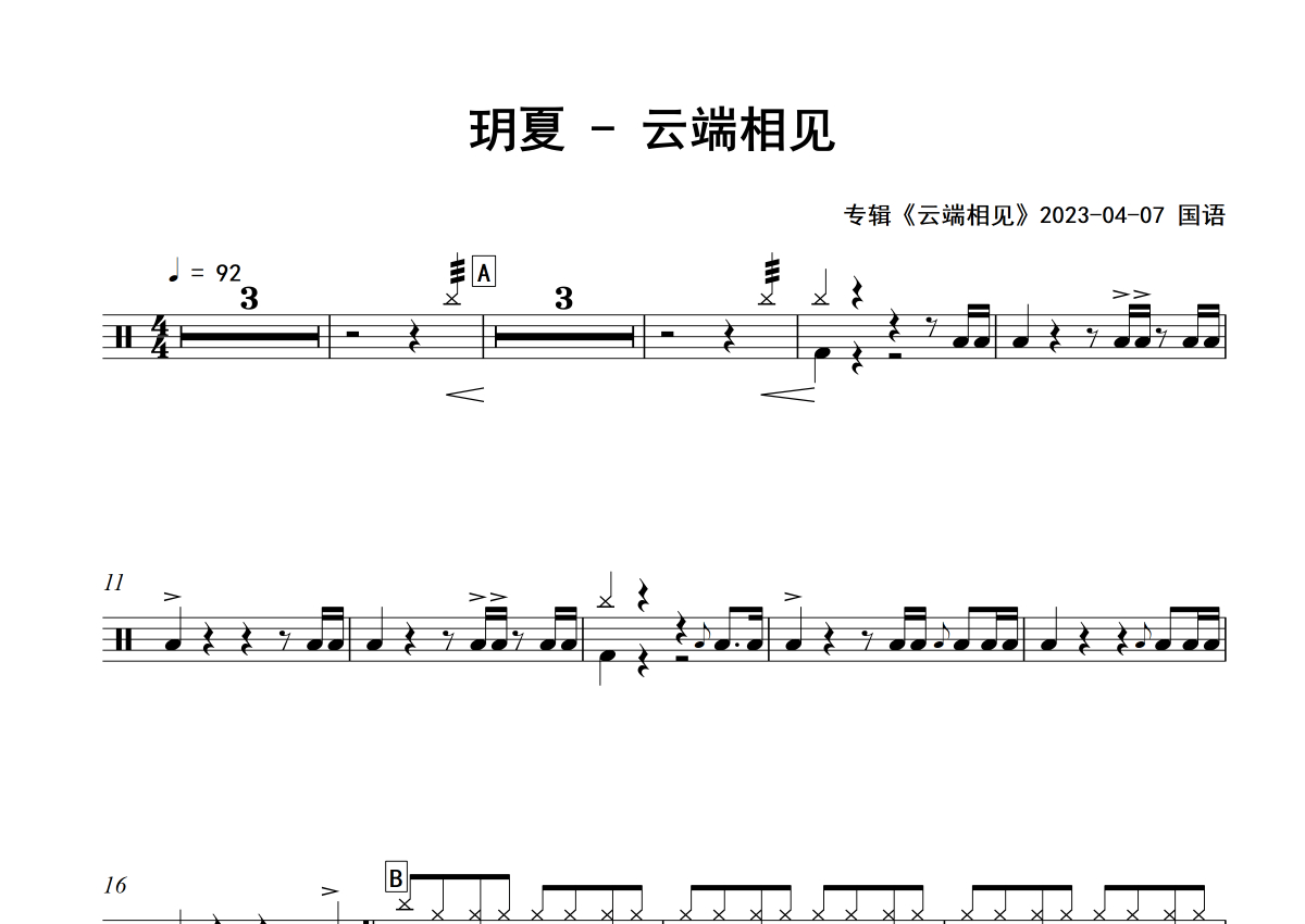 • 云端相见鼓谱 - 玥夏 - 架子鼓谱 - 专辑版第1张