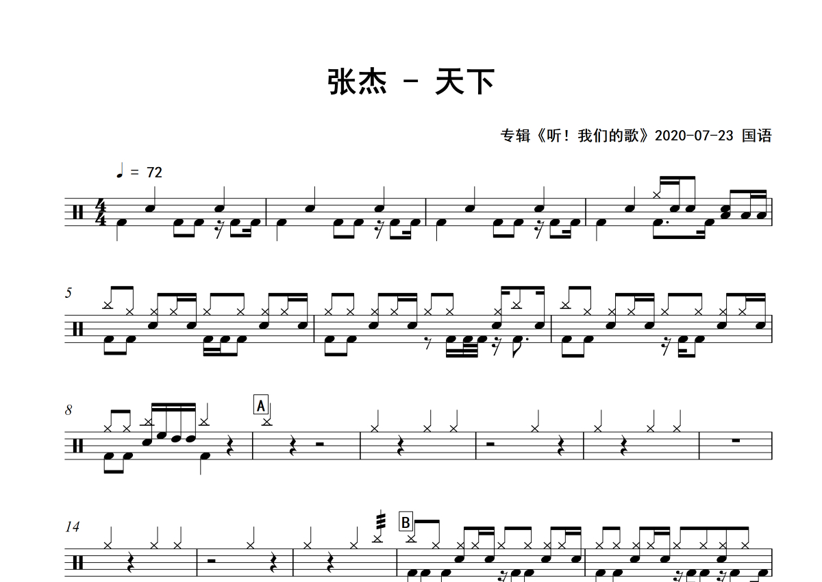 天下鼓谱 - 张杰 - 架子鼓谱 - 专辑版