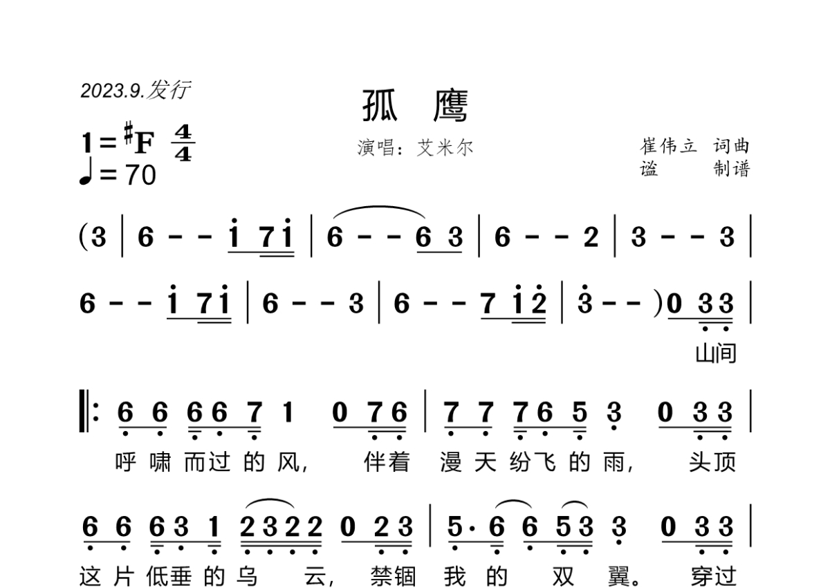 孤鹰简谱 - 艾米尔